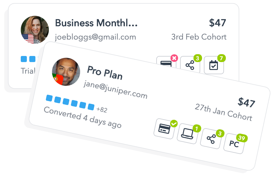 Check Out The Dashboard →Define pipelines, track what stage each of your trials are at and collaborate with your team to maximise conversions.