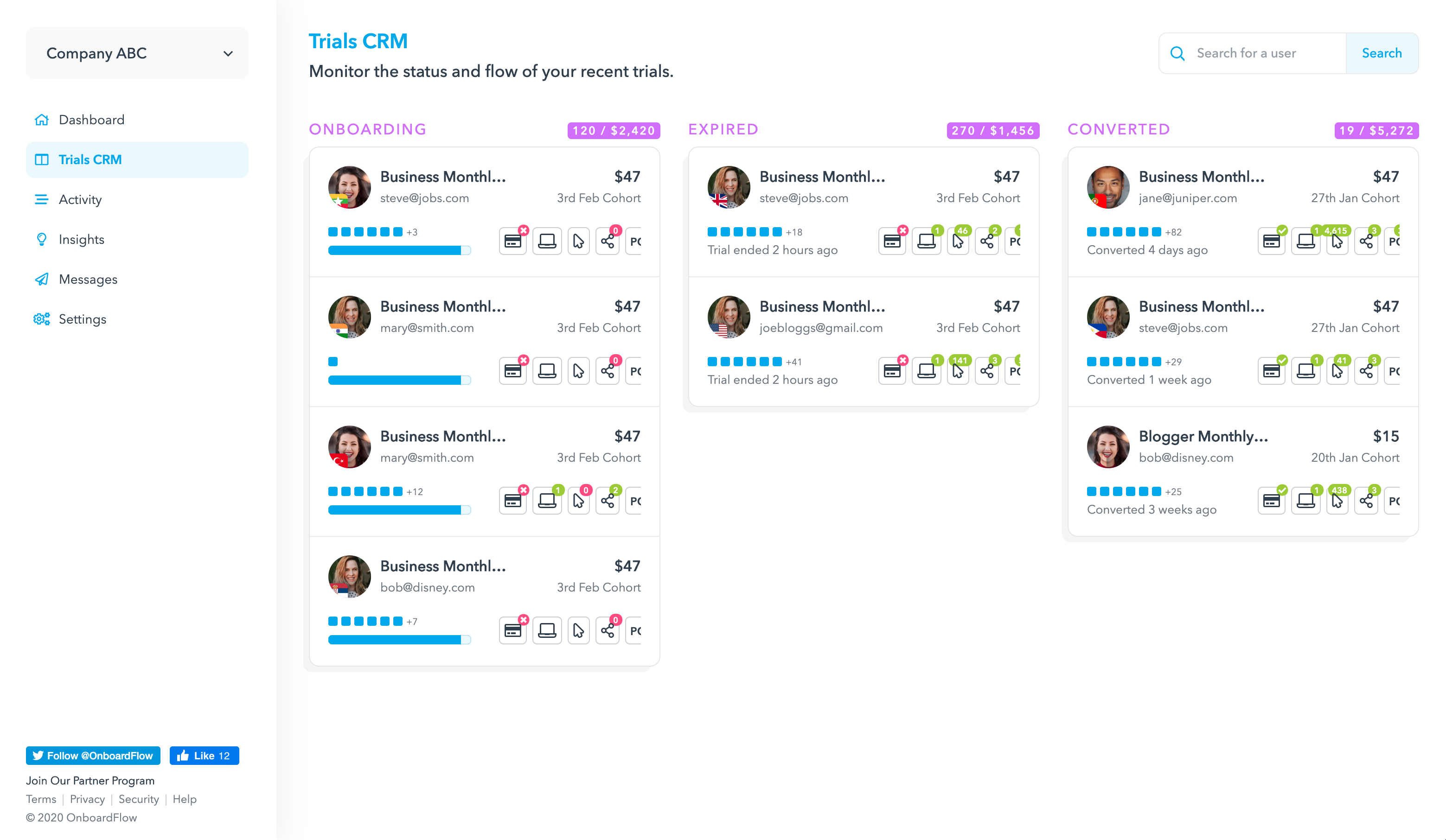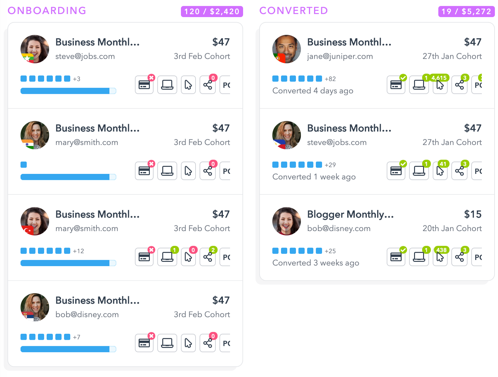 Whether you have a custom onboarding sequence, or a pre-defined set of actions you like to see each of your trials take during their trial, its your pipeline to define.